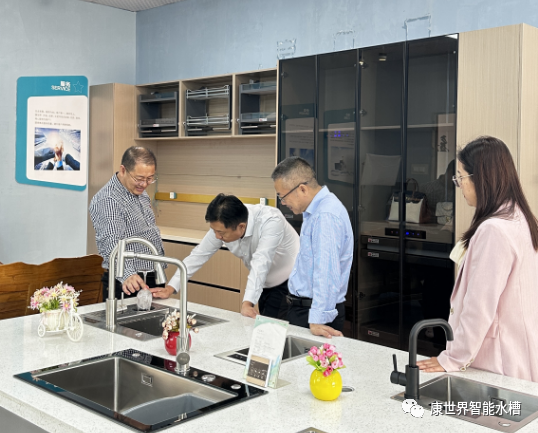 程代表一行在康世界董事長于日升先生的帶領下考察參觀康世界的生產(chǎn)車間、展廳,積極參與智能水槽的體驗,對智能水槽的創(chuàng)新技術贊不絕口!